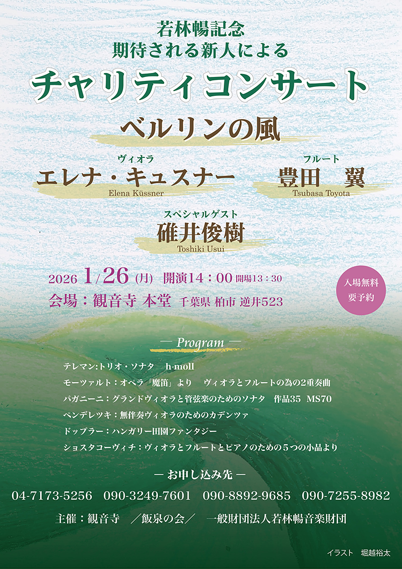 - 3月31日号 東京新聞に「バイオリニスト若林さんの遺志を継ぐ財団初の演奏会」が掲載